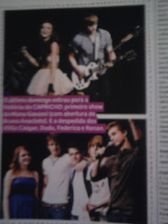 No quadrinho rosa acima diz: O último domingo entrou para a história da CAPRICHO: primeiro show da Manu Gavassi (com abertura de Bruno Anacleto). E a despedida dos VDGs Caíque,Dudu,Federico e Renan.